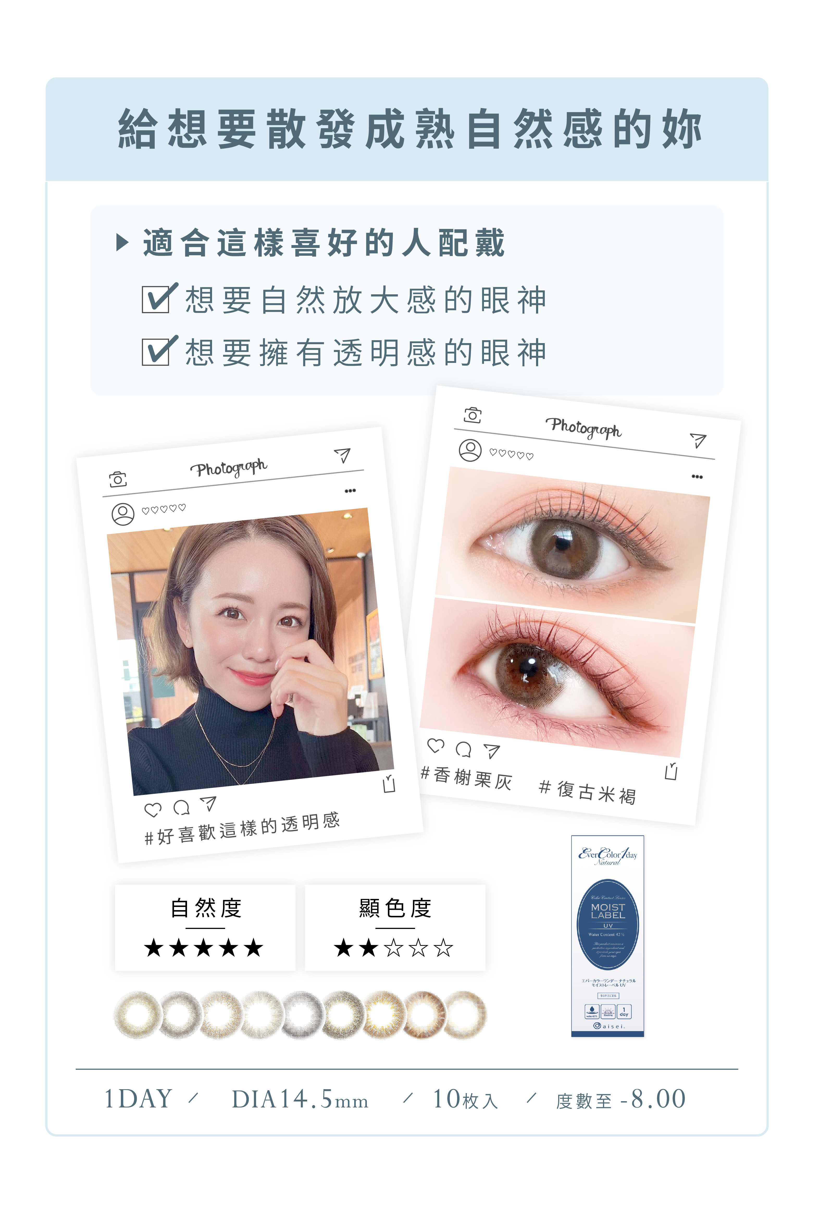 【EverColor】MOIST LABEL系列 香榭栗灰 Ennui Look 彩色日拋 10片裝